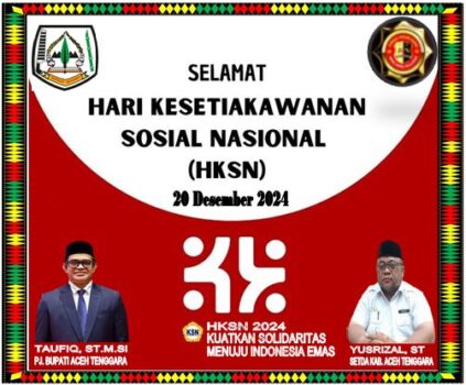 Pj Bupati TAUFIQ ST M.SI dan Setda YUSRIZAL ST Kabupaten Aceh Tenggara Mengucapkan Selamat Hari Kesetiakawanan Sosial Hasional (HKSN) 20 Desember 2024 ” KUATKAN SOLIDARITAS MENUJU INDONESIA EMAS “
