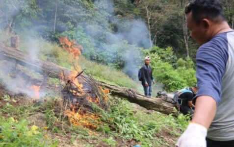 Pada operasi pemusnahan yang dilakukan pada Rabu, 11 Desember 2024, sebanyak 15.000 batang ganja dengan tinggi tanaman antara 50 hingga 150 cm dimusnahkan oleh pihak kepolisian. Proses pemusnahan dilakukan langsung di lokasi dengan cara mencabut tanaman ganja satu per satu dan membakarnya sampai tuntas. Penemuan ladang ganja ini menunjukkan bahwa penanaman ganja masih dilakukan secara sistematis, terlihat dari pola tanam yang rapi, dengan jarak antar tanaman sekitar 50 hingga 80 cm.