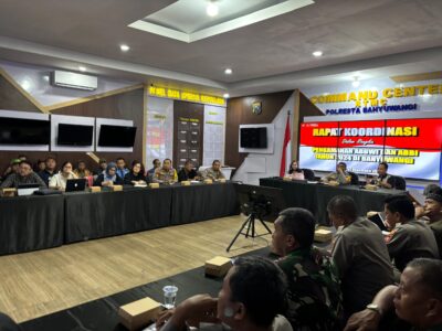 Jelang Pelaksanaan Kegiatan Aku Bangga Berwisata di Indonesia (ABBWI) dan Anugerah Bangga Buatan Indonesia (BBWI), Polresta Banyuwangi Bersama isntansi terkait melaksanakan rapat koordinasi di command center, Rabu (11/12/2024)