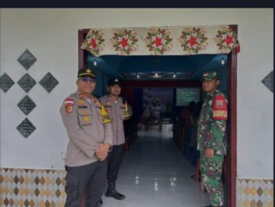 Seperti tampak di gereja GKPB lokasi RT 02 RW01 Kelurahan Batu panjang Polsek Rupat IPTU Zulkarnain chan.S.E bersama anggota. Bripka Angga Pratama dan .Babinsa pengamanan hadir di lokasi tersebut untuk menjamin kelancaran ibadah Natal.