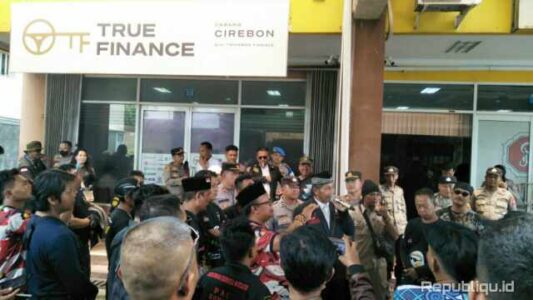 Ratusan anggota Lembaga Swadaya Masyarakat Cakrabuana Indonesia Bersatu (LSM CIB) menggelar aksi unjuk rasa (unras) di kantor leasing True Finance, yang beralamat di komplek Tuparev Super Blok Kedawung kabupaten Cirebon, Senin (16/12/2024).