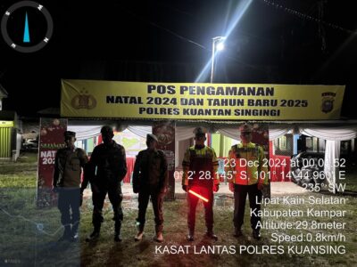 Kapolres Kuansing AKBP Pangucap Priyo Soegito, S.I.K., M.H., melalui Kasat Lantas Polres Kuansing AKP Boy Setiawan, S.A.P., M.Si., menyampaikan bahwa dalam menghadapi perayaan Natal dan Tahun Baru, Polres Kuansing telah menyiapkan sejumlah langkah strategis untuk menjaga keamanan dan kenyamanan masyarakat. Salah satu langkah tersebut adalah pendirian Pos Pengamanan (Pospam) di titik-titik strategis yang berpotensi terjadi peningkatan aktivitas masyarakat, termasuk di Desa Tanjung Pauh, Kecamatan Singingi Hilir.