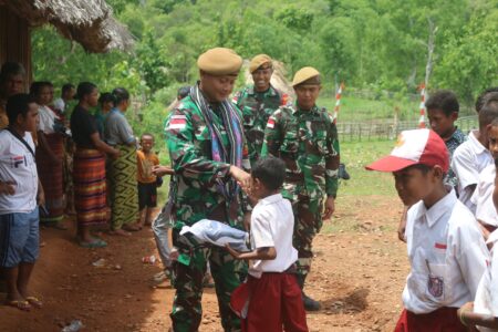 Satgas Pamtas RI-RDTL Yonarhanud 15/DBY Bagikan 1000 Sepatu untuk Anak Pedalaman NTT”