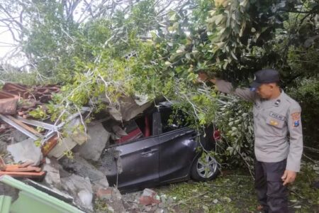 “Satu unit mobil Honda Brio milik Kepala SMPN 2 Srono rusak akibat tertimpa pohon beringin yang tumbang tersebut,” katanya.