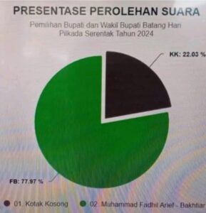 Paslon Fadhil-Bakhtiar sudah dipastikan menang pada Pilkada Batanghari tahun 2024 ini, namun yang belum dapat dipastikan persentase kemenangan pertahana ini di Kabupaten Batanghari.