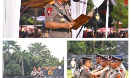 Upacara ini dipimpin langsung oleh Kapolda Lampung, Irjen Pol Helmy Santika, yang sekaligus membacakan amanat Kalemdiklat Polri.
