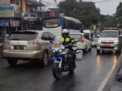 Anggota Satuan Lalu Lintas (Satlantas) Polres Bogor, Minggu (22/12/2024) cooling system melakukan tindakan cepat memberikan bantuan kepada sebuah ambulans yang membawa pasien darurat rujukan ke rumah sakit paru Cisaru, Kabupaten Bogor. Ambulans tersebut terjebak pada saat diberlakukan one way arah Jakarta.
