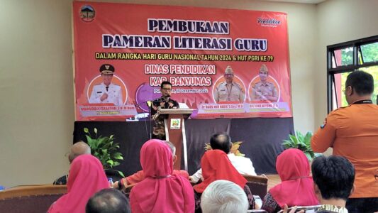 Dalam rangka memperingati Hari Guru Nasional dan HUT ke-79 Persatuan Guru Republik Indonesia (PGRI), Dinas Pendidikan (Dindik) bersama PGRI Kabupaten Banyumas, menyelenggarakan Pameran Literasi Guru, Selasa (10/12/2024) di sekitar kantornya. Kegiatan bertujuan untuk meningkatkan budaya literasi di kalangan pendidik dan memberikan apresiasi terhadap karya para guru.