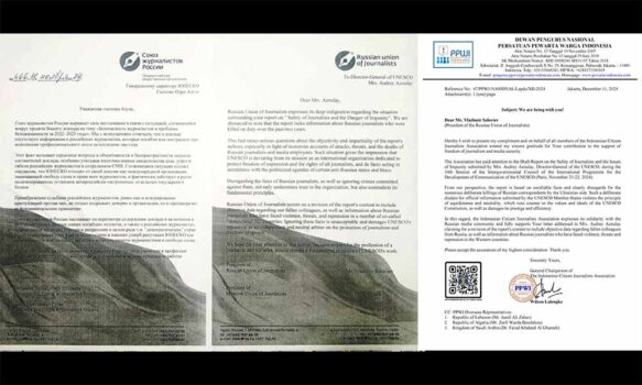 Dalam draft laporan UNESCO tentang Keselamatan Jurnalis dan Isu Impunitas Jurnalis yang disampaikan pada pertemuan Sesi Ke-34 Dewan Kerjasama Antar Pemerintahan dan Program Internasional tentang Pembangunan Komunikasi UNESCO di Paris pada tanggal 21-22 November 2024 lalu, lembaga tersebut terkesan diskriminatif dan kurang akurat dalam menyajikan data real terkait hambatan, pembatasan akses, penangkapan, penyiksaan, dan pembunuhan, yang dialami kalangan jurnalis, khususnya para jurnalis Rusia. Oleh sebab itu, sekali lagi saya mendesak agar Direktur Jenderal UNESCO, Ibu Audrey Azoulay, segera merevisi dan melengkapi draft laporannya, sebelum dipublikasikan pada tanggal 13 Desember 2024 mendatang, dengan mencantumkan data faktual tentang kondisi dan situasi yang dialami para wartawan Rusia saat melakukan peliputan di medan perang Rusia-Ukraina.