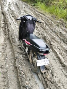 Jangankan untuk roda empat bahkan utk roda duapun susah untuk melintasi jalan tersebut.
