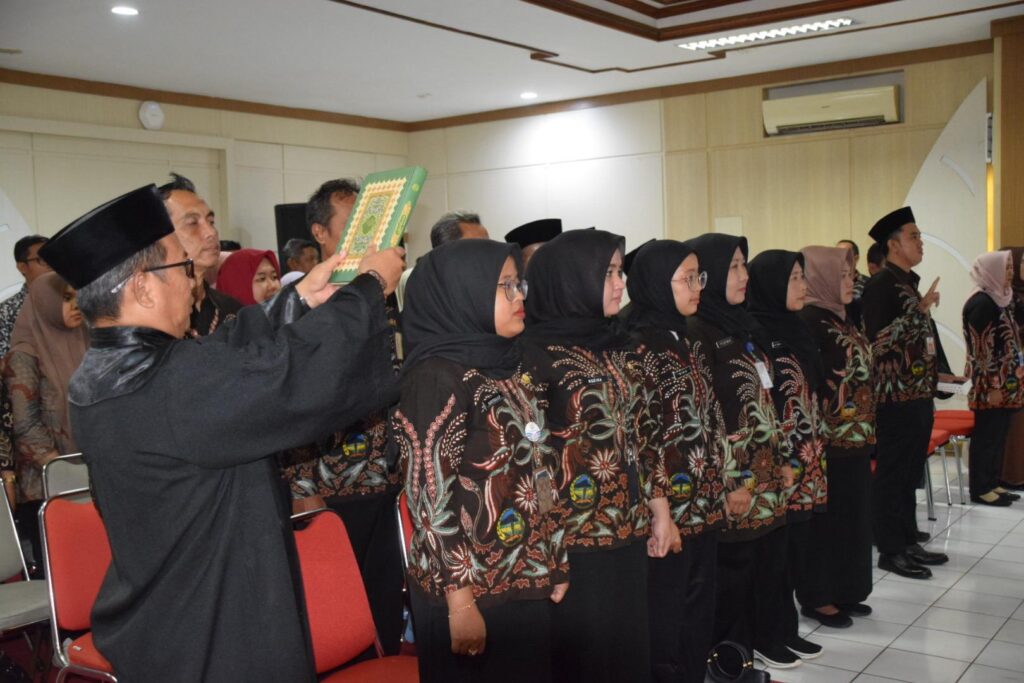 Plt. Asisten Administrasi dan Umum Setda Banyumas Djoko Setyono melantik dan mengambil sumpah jabatan 29 Aparatur Sipil Negara menjadi Pejabat Fungsional dalam Bidang Pekerjaan Umum dan Penataan Ruang (PUPR) dan Penata Perijinan. Pelantikan dan pengambilan sumpah/janji jabatan fungsional tersebut berlangsung Selasa sore 31 Desember 2024 di Smartroom Graha Satria Purwokerto.