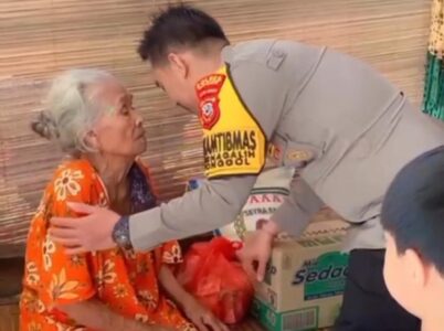 Bhabinkamtibmas Desa Sirnagalih, Polsek Jonggol Polres Bogor, Polda Jabar, Bripka Upie Wahyudi, melaksanakan giat cooling system silaturahmi menyambangi warga binaan lansia yang kurang mampu dan menyalurkan bantuan sembako, di Kampung Poponcol RT 007/004 Desa Sirnagalih, Kecamatan Jonggol, Kabupaten Bogor, Jawa Barat, Senin (13/01/2025).