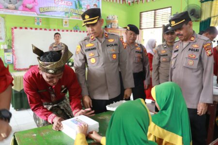 “Hari ini Polres Pelalawan membagikan sebanyak 900 kotak makan siang bergizi dan gratis kepada seluruh siswa SD negeri 009 Kuala Terusan Kecamatan Pangkalan Kerinci. Setiap anak mendapat jatah satu nasi kotak dan satu kotak susu kemasan,”ujarnya Kapolres Pelalawan melalui Waka Polres Kompol I Komang Aswatama.
