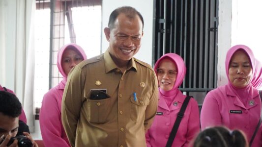 Sekretaris Daerah (Sekda) Langkat, Amril, S.Sos., M.AP., mendampingi Kapolres Langkat, AKBP David Triyo Prasojo, S.H., S.I.K., M.Si., dalam kegiatan pembagian makan siang bergizi gratis di Sekolah Luar Biasa (SLB) Negeri Stabat, Senin (20/1/2025).