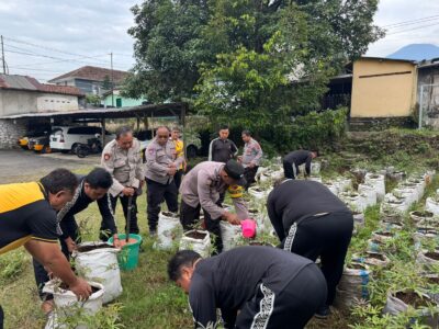 Kapolsek Baturaden Polresta Banyumas AKP Tri Hargo W melaksanakan Program Penanaman Ubi Cilembu di komplek Polsek Baturaden.