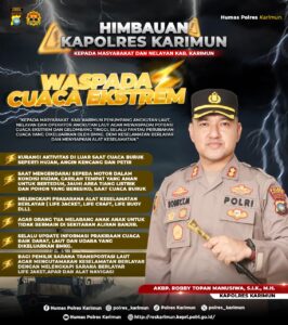 Kapolres Karimun menyampaikan bahwa himbauan ini ditujukan kepada seluruh masyarakat Kabupaten Karimun baik yang bermukim di pesisir pantai, penumpang angkutan laut, nelayan, dan operator angkutan laut diminta untuk tidak meremehkan potensi bahaya yang muncul akibat dari cuaca ekstrim.