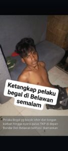 Polisi Polres Pelabuhan Belawan berhasil meringkus dua pelaku begal sadis yang terlibat dalam aksi pembacokan terhadap korban bernama Iwan Syahputra Lubis (40), warga Kampung Nelayan Seberang, Kelurahan Belawan I, Kecamatan Medan Belawan. Aksi kejam ini terjadi pada Senin malam, 13 Januari 2025, di depan Pelabuhan Bandar Deli, Jalan Stasiun KA, Kelurahan Belawan I, Kecamatan Medan Belawan.