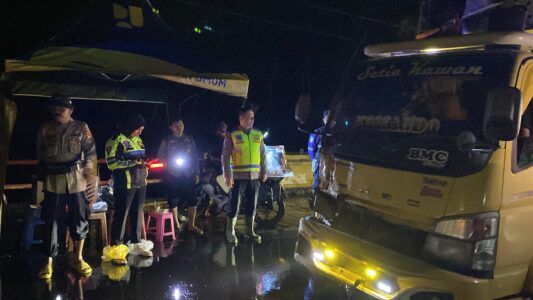 Kapolres Pelalawan Tetap Siagakan Personel di Lokasi Banjir Km 83 meski Air Berangsur Surut