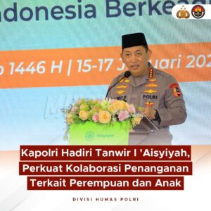 Kapolri Jenderal Listyo Sigit Prabowo, menghadiri acara Tanwir I Aisyiyah yang digelar di Hotel Tavia Heritage, Jakarta Pusat, Rabu (15/1/2025). Kehadiran Kapolri di acara tersebut di sambut tepuk tangan meriah, ketika Kapolri ucapkan salam muhammadiyah. Dalam kesempatan tersebut, Kapolri menegaskan komitmen Polri untuk terus mendukung isu-isu terkait perempuan dan kesetaraan gender.