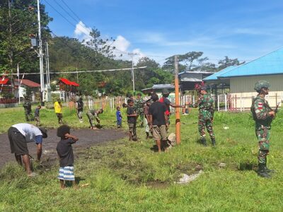 Karya Bhakti Bersama Masyarakat, Satgas Yonif 641/Bru Perbaiki Fasilitas Olahraga Di Distrik Kurima