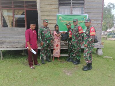 Koramil 04/Rupat Posramil Rupat Utara melalui Babinsa Serka Novriadi,Jumat (24/01/2024) melaksanakan pembagian sembako kepada masyarakat Desa Teluk Rhu yang berada di seputaran Aset Pertamina.