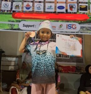 Nuha Samika (5 tahun) perenang usia dini masih duduk di Taman kanak-Kanak Islam Wardatul Jannah Bangkaweh kecamatan Banuhampu kabupaten Agam mendapat 2 buah medali perak dan 1 perunggu pada Kejuaraan Renang Bhayangkara Championship Open II Tahun 2025 yang diadakan di Kolam Renang Ngalau Indah Kota Payakumbuh.