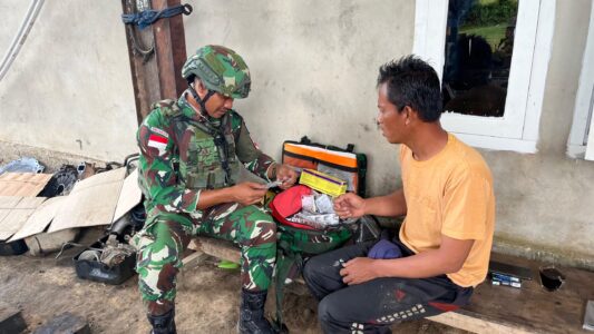 Peduli Kesehatan Warga, Satgas Yonif 642/Kps Laksanakan Yankes di Kampung Warisa Mulya