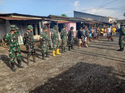 Personel Koramil 03-/Galut Bersama Warga Kerja Bakti Bersihkan Saluran Air