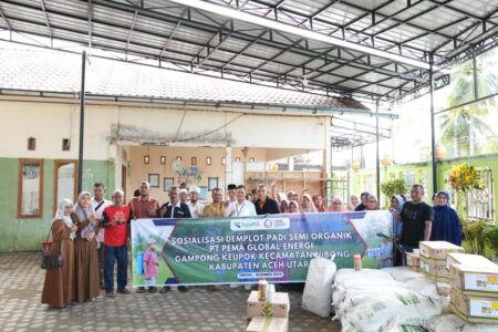 PT. Pema Global Energi (PGE) kembali melaksanakan program demplot padi semi organik untuk membantu para petani sawah di sekitar wilayah operasi perusahaan. Kali ini PGE membantu memberikan sosialisasi penanaman padi sistem semi organik dan menyerahkan bantuan bibit padi, pupuk dan obat-obatan pertanian organik kepada masyarakat di tiga desa masing-masing Desa Teungoh dan Moncrang Kecamatan Syamtalira Aron dan Desa Keupok Kecamatan Nibong.