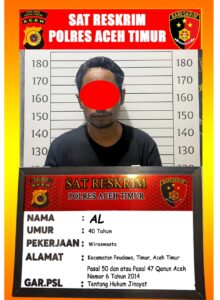 Kasat Reskrim Polres Aceh Timur Iptu Adi Wahyu Nurhidayat, S.TrK.,S.I.K. menyebutkan, pelaku berinisial AL (40) warga Kecamatan Peudawa, Kabupaten Aceh Timur.