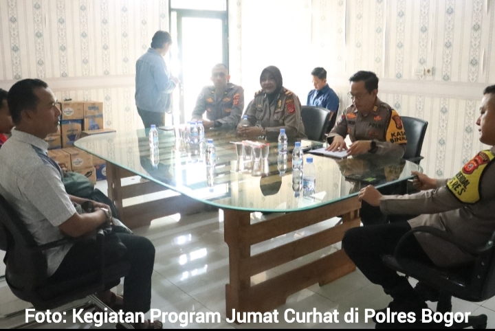 Polres Bogor mengadakan kegiatan Jumat Curhat dilaksanakan di ruang mediasi Mako Polres Bogor, Jl. Tegar Beriman, Tengah, Kecamatan Cibinong, Kabupaten Bogor, pada Jumat pagi (31/1/2025). Acara yang dimulai pukul 09.00 WIB ini dipimpin Kabag Ops Polres Bogor Kompol Bayu Tri Nugraha.