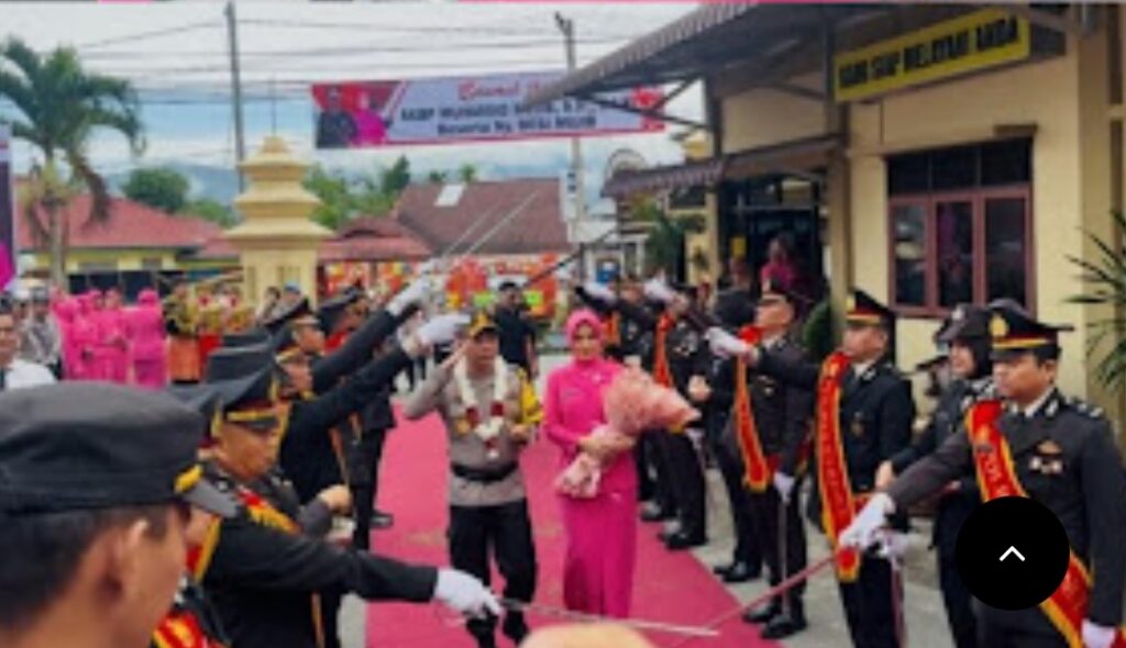 Setibanya di gerbang Mapolres Kerinci, kedatangan AKBP Arya Tesa Brahmana disambut secara resmi dengan laporan kesatuan, tarian tradisional, dan tradisi Pedang Pora, yang menjadi simbol penghormatan.