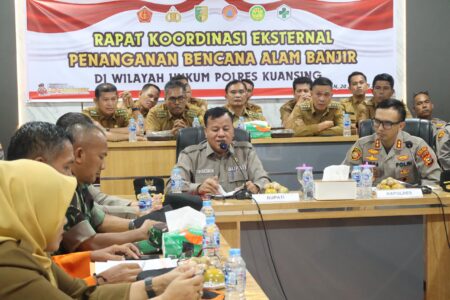 Bupati Kuansing Dr. H. Suhardiman Amby menyampaikan apresiasi kepada Polres Kuansing atas inisiatif penyelenggaraan rapat ini. Beliau menekankan bahwa intensitas banjir di Kuansing dipengaruhi oleh curah hujan di Provinsi Sumatera Barat. “Saat ini, Desa Petapahan di Kecamatan Gunung Toar menjadi salah satu daerah yang harus mendapat perhatian khusus. Saya juga meminta para camat untuk memantau kondisi wilayahnya secara intensif dan melaporkan perkembangan situasi dengan cepat,” kata Bupati.