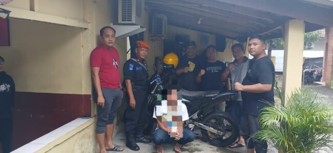 Saat ini pelaku berikut barang bukti berupa 1 (satu) unit sepeda motor Kawasaki KLX warna hitam beserta kunci kontak sepeda motor, 1 (satu) buah kaos oblong warna putih bergambar abstrak, 1 (satu) buah celana panjang jeans warna biru serta1 (satu) buah jaket warna hitam kami amankan guna proses hukum lebih lanjut. Pelaku dijerat dengan Pasal 362 KUHP dengan ancaman penjara 5 tahun, imbuh Kompol Andryansyah.