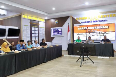 Polresta Banyuwangi menggelar rapat koordinasi (rakor) terkait pengamanan kegiatan East Java Running Fest 2025 yang akan digelar pada mimggu, 26 Januari 2025, di pantai Marina Boom Banyuwangi.