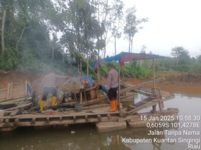 Polsek Hulu Kuantan Tertibkan Aktivitas Penambangan Emas Tanpa Izin (PETI) di Desa Tanjung