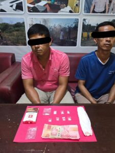 Barang bukti yang berhasil diamankan meliputi delapan bungkus kecil plastik bening berisi narkotika jenis sabu, satu kotak rokok merek Sampoerna, satu batang rokok, dan sejumlah uang tunai pecahan seratus ribu rupiah. Hasil tes urine menunjukkan bahwa kedua tersangka, AD dan AN, positif mengandung zat amphetamine.