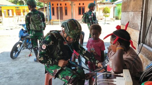 Pos Dataran Beimes Satgas Pamtas RI-PNG Yonif 642/Kps Wilayah Papua Barat melaksanakan kegiatan Pelayanan Kesehatan di Kampung Destra Distrik Dataran Beimes, Kabupaten Teluk Bintuni, Provinsi Papua Barat. (20/1/2025).