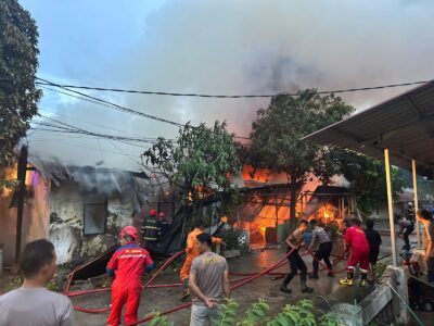 Kebakaran melanda Asrama Polisi (Aspol) Polresta Barelang, Blok C, Kota Batam, Rabu (22/1/2025). Empat unit rumah, yaitu nomor 13, 14, 15, dan 16, dilaporkan hangus terbakar dalam insiden tersebut.