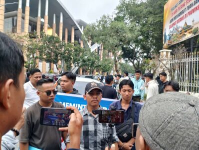Aliansi Gerakan Pemuda dan Mahasiswa Riau (AGPEMARI) menggelar aksi unjuk rasa di samping Kantor Gubernur Riau, Jalan Sudirman, Pekanbaru, pada Sabtu, 22 Februari 2025. Massa aksi mendesak Komisi III untuk mengusut tuntas kasus dugaan korupsi proyek geomembran di PT Pertamina Hulu Rokan (PHR) dengan nilai lebih dari Rp200 miliar.
