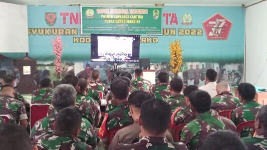 Dalam rangka memperkuat sinergitas dan meningkatkan profesionalisme prajurit di wilayahnya, Danrem 042/Garuda Putih (Danrem 042/Gapu) Brigadir Jenderal TNI Heri Purwanto SE., M.Sc. mengadakan Video Conference (Vicon) dengan seluruh anggota Komando Distrik Militer (Kodim) 0420/Sarko. Vicon ini bertujuan untuk memberikan pengarahan strategis dan membahas kesiapan serta langkah-langkah TNI dalam menjaga stabilitas keamanan dan mengoptimalkan organisasi personil di wilayah Korem 042/Gapu.