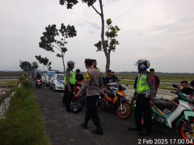 Polisi dari Satlantas Polres Purbalingga bersama Polsek Kaligondang mendatangi lokasi yang dilaporkan sering menjadi tempat balap liar di jalan raya Desa Cilapar, Kecamatan Kaligondang, Kabupaten PurbaIingga, Minggu (2/2/2025) sore.