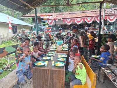 Dukung Program Nasional : Satgas Yonif 641/Bru Beri Makan Bergizi Gratis Bagi Anak-Anak Papua Di Distrik Kurima