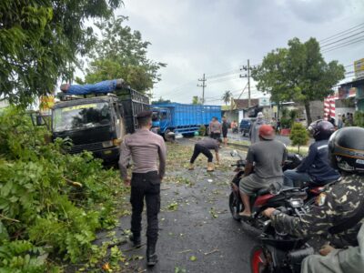 Gerak Cepat Polresta Banyuwangi bersama Instansi Lainnya Atasi Pohon Tumbang Dampak Bencana Angin