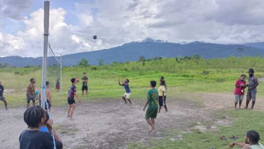 Jaga Kebugaran Dan Kesehatan, Satgas Yonif 641/Bru Gelar Olahraga Bola Volly Bersama Pemuda Distrik Elelim