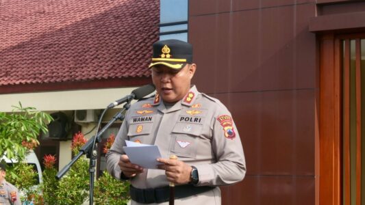 Kapolres Blora, AKBP Wawan Andi Susanto, SH, SIK, MH, memimpin Apel Gelar Pasukan untuk Operasi Keselamatan Lalu Lintas Candi yang dilaksanakan pada Senin, 10 Februari 2025, di halaman Mapolres Blora.