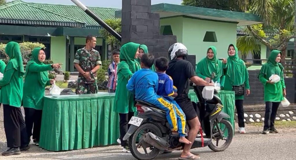 Pada kegiatan Jumat Berkah kali ini, TNI memberikan sarapan pagi dan kue kepada para pengguna jalan yang melintas di depan Makodim 0420/Sarko.