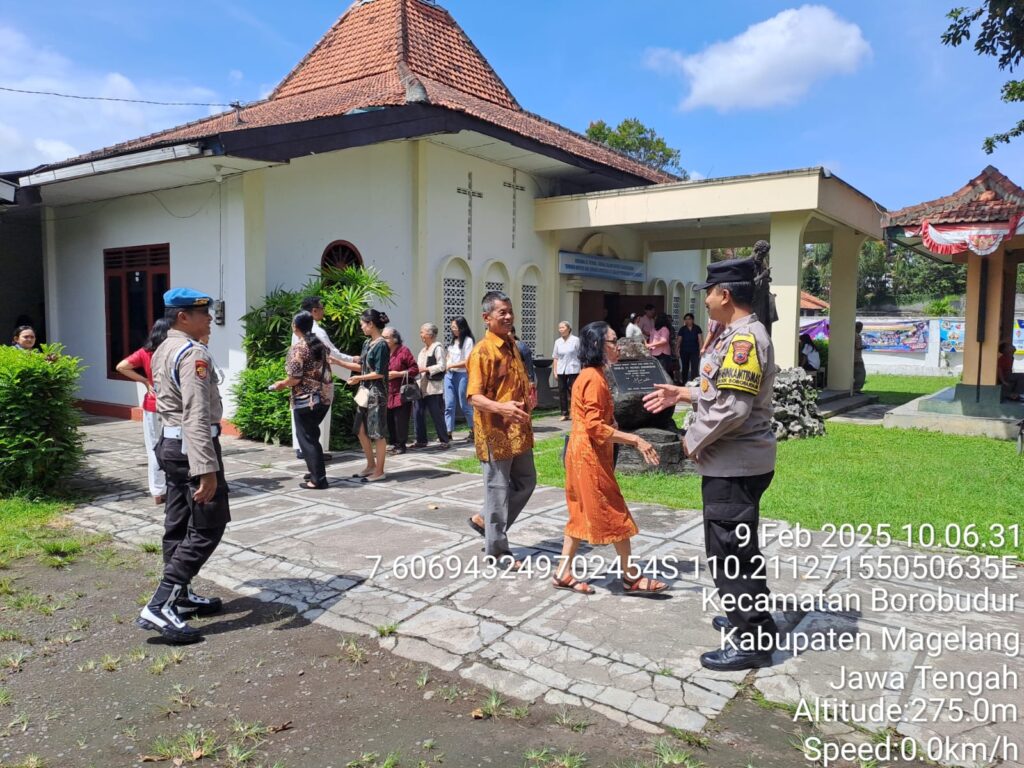 Selain Kapolsek Borobudur, hadir dalam acara itu pemimpin ibadah Romo V. Palma Adihartono. Pr. Serta anggota Polresta Magelang Aipda Indra Kurniawan (PS. Kanit Propam), Aiptu M. Zuhrianto, S.H. (Bhabinkamtibmas), dan Bripka Harwanto (Bhabinkamtibmas) serta jemaat gereja sebanyak 300 orang.
