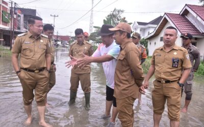 Hari pertama masuk kerja wabup Husni Tamrin tinjau banjir SMP 1 dan Jalan Pemda Pangkalan Kerinci