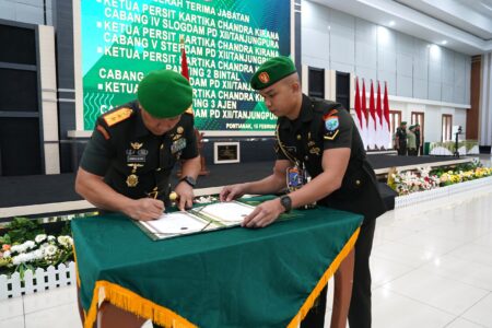 Pangdam XII/Tanjungpura Mayjen TNI Jamallulael, S.Sos., M.Si., memimpin acara Tradisi dan Serah Terima Jabatan (Sertijab) pejabat di jajaran Kodam XII/Tpr. Acara berlangsung di Aula Sudirman, Makodam XII/Tpr, Sabtu (15/2/2025).